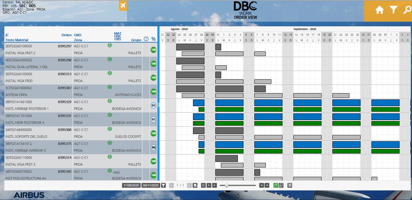 DBC is a digital tool for the visualization and information of the schedule and actual progress of production tasks at Airbus Defence & Space plants.